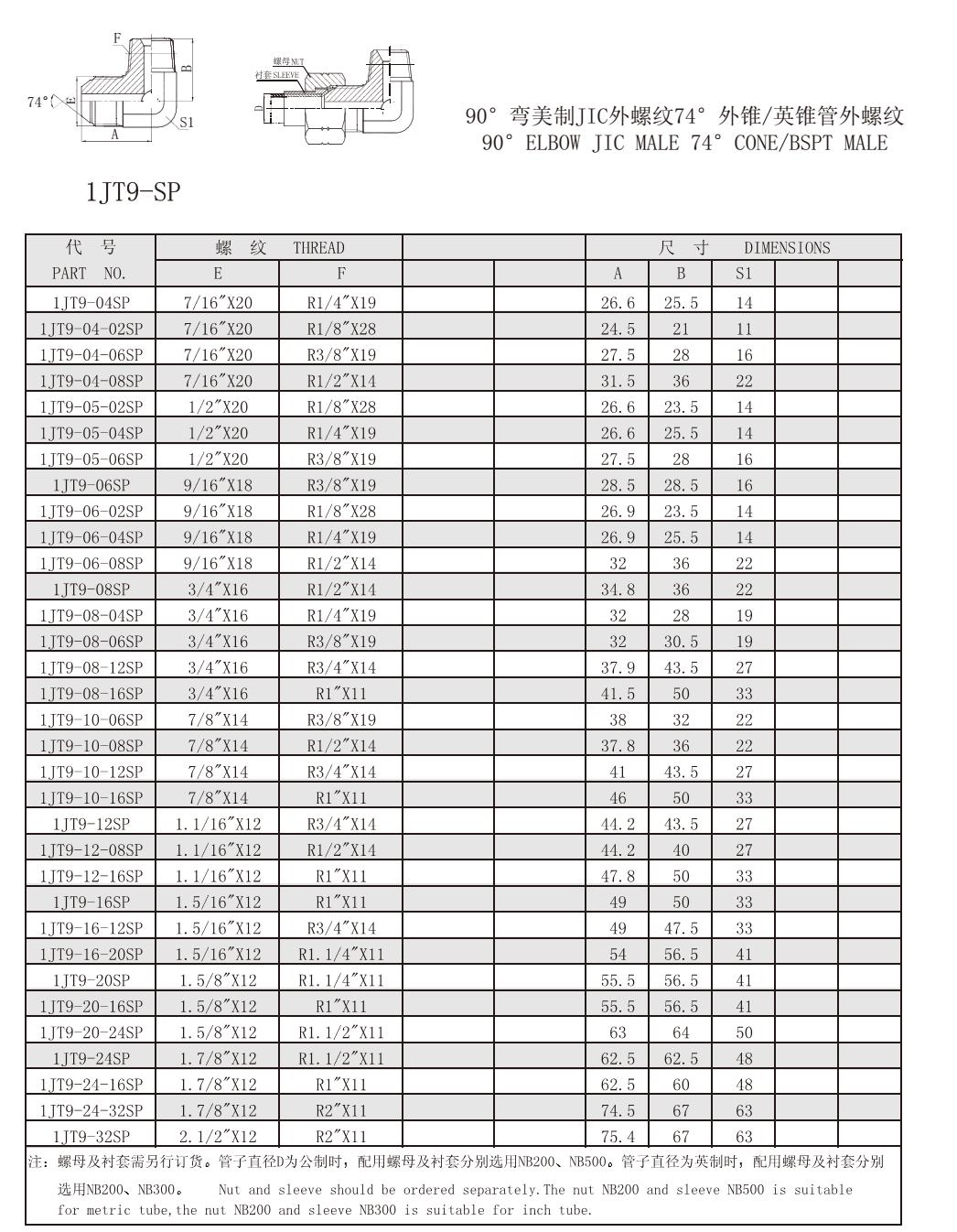 1JT9-SP 90°彎美制JIC外螺紋74°外錐/英錐管外螺紋